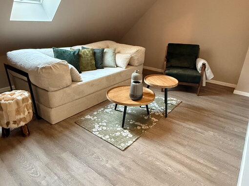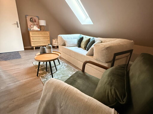 - Wohnzimmer mit großzügiger Schlafcouch (1,80 x 2,00 m)