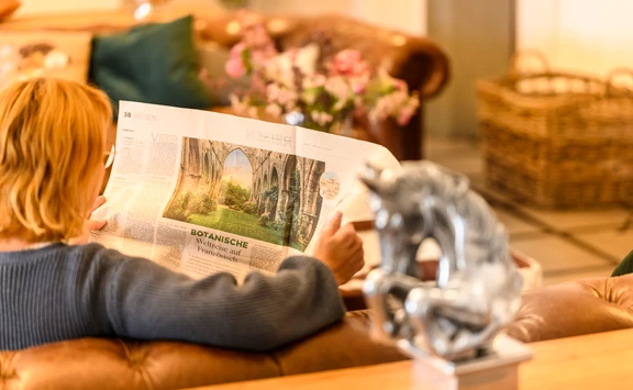 Nehmen Sie Platz und genießen Sie das Hier und Jetzt. Das geht in unserer wunderschönen Lobby nämlich wie von selbst. Auf den edlen und bequemen Ledersofas können Sie gemütlich in unseren Zeitschriften blättern. Oder Sie lehnen sich zurück und zählen die Kristalle am riesigen Kronleuchter.
